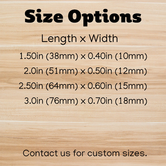 Choose from unfinished natural wood or from our selection of stained colors. We use a semi-transparent stain which will still show the natural wood grain. The front and the back will be stained. The side will remained unstained, but still slightly darkened by the laser cutter. Colors in the pictures may vary slightly depending on your monitor or mobile device settings. Contact us for stain samples or custom stain colors (large bulk orders only).