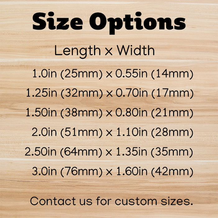 Choose from unfinished natural wood or from our selection of stained colors. We use a semi-transparent stain which will still show the natural wood grain. The front and the back will be stained. The side will remained unstained, but still slightly darkened by the laser cutter. Colors in the pictures may vary slightly depending on your monitor or mobile device settings. Contact us for stain samples or custom stain colors (large bulk orders only).